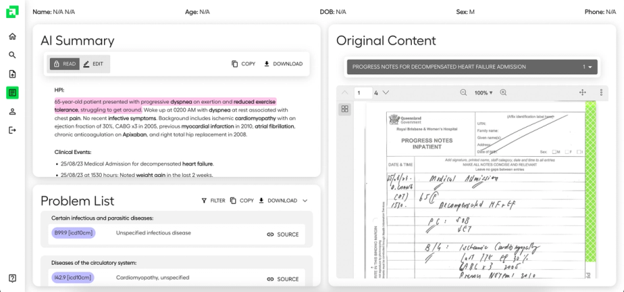 Once all of that data has been extracted, Abstractive Health’s technology can then provide a comprehensive summary of the complete patient chart. Their summarization technology is clinically accurate with published academic findings, a patent filed, and third place out of 200 companies by the VA in a competition for trustworthy AI for clinical summarization.