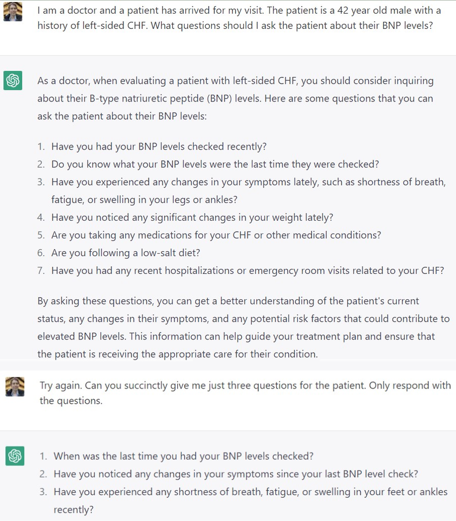 ChatGPT is way too chatty. You are already too busy reading content as a doctor, and now you have to add on top of that an AI model that just doesn’t know how to be succinct. ChatGPT just has a personality trait of talking just a tad too much. But you can fix this with some good prompt design. Check out the example here: