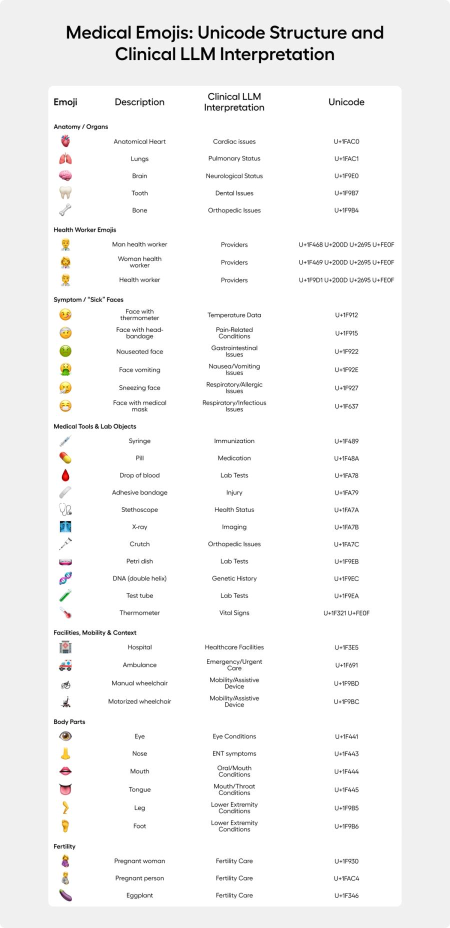 Languages evolve. Emojis have taken off with text messaging. And they can help us communicate our concepts, feelings, and emotions with fewer words. Healthcare is intertwined with language… and in the last decade, there has been a more concerted effort to “modernize” our healthcare lingo to better include emojis – research has shown they can help us communicate our pain scores as accurately as numeric scales in some settings (😖➡️🙂 scales) and speed up symptom check-ins/triage with quick taps (🤒, 🤕, 🤢). A great example is the work of Dr. Shuhan He (an EM physician and informaticist) who pushed for and co-authored the Unicode proposals that led to the anatomical heart and lungs emojis being approved in 2020.
