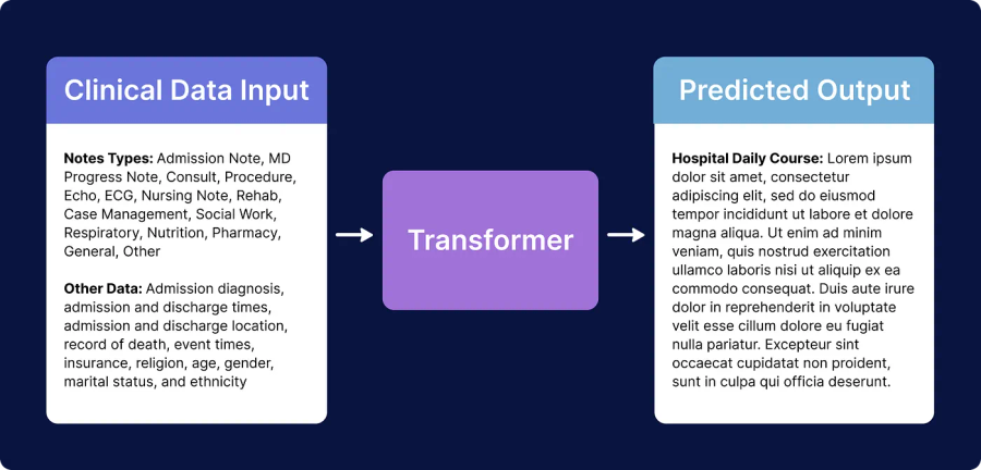 What this all means is that transformers are able to predict deeper relationships within sentences and perform better at NLP tasks such as document classification, sentiment analysis, machine translation, question and answering, and summarization. And in healthcare, that means better diagnostic accuracy prediction, more automation of rote tasks such as medical coding and computer data entry, and precision medicine (designing a medication plan for each patient). Before transformers, the best structure for building a patient summary of their health record would be through a rule-based branching logic with a combination of keyword extraction through a graph-based algorithm such as TextRank. These early models had low fluency and were extremely difficult to maintain when put into production. Hence why true automated narrative summaries in healthcare have been non-existent; if a doctor wanted to read a good summary of the medical chart, they relied on another doctor to comb through the chart and do so manually for them. Transformers are finally good enough as a machine learning model to solve a problem in healthcare such as document summarization.
